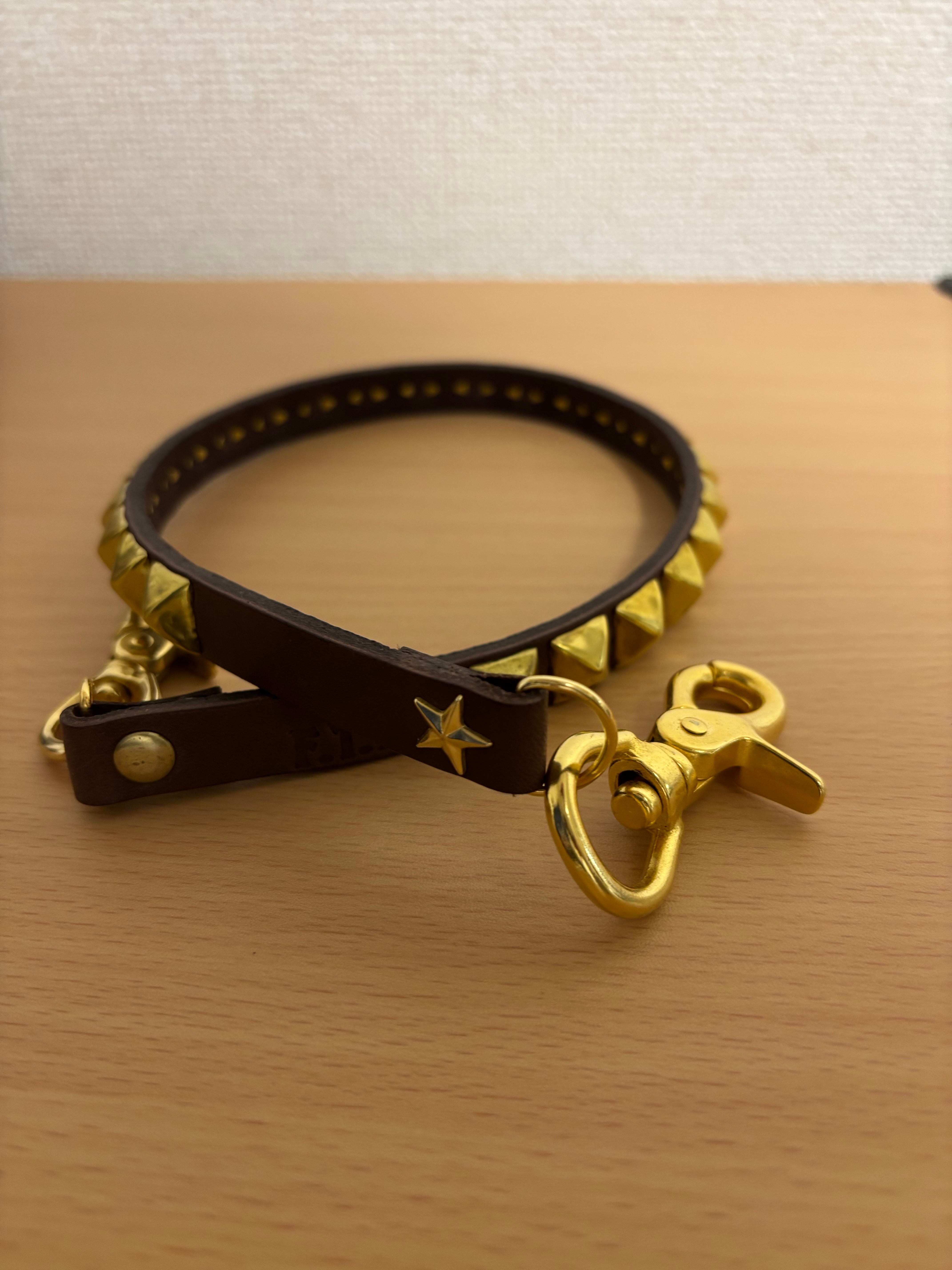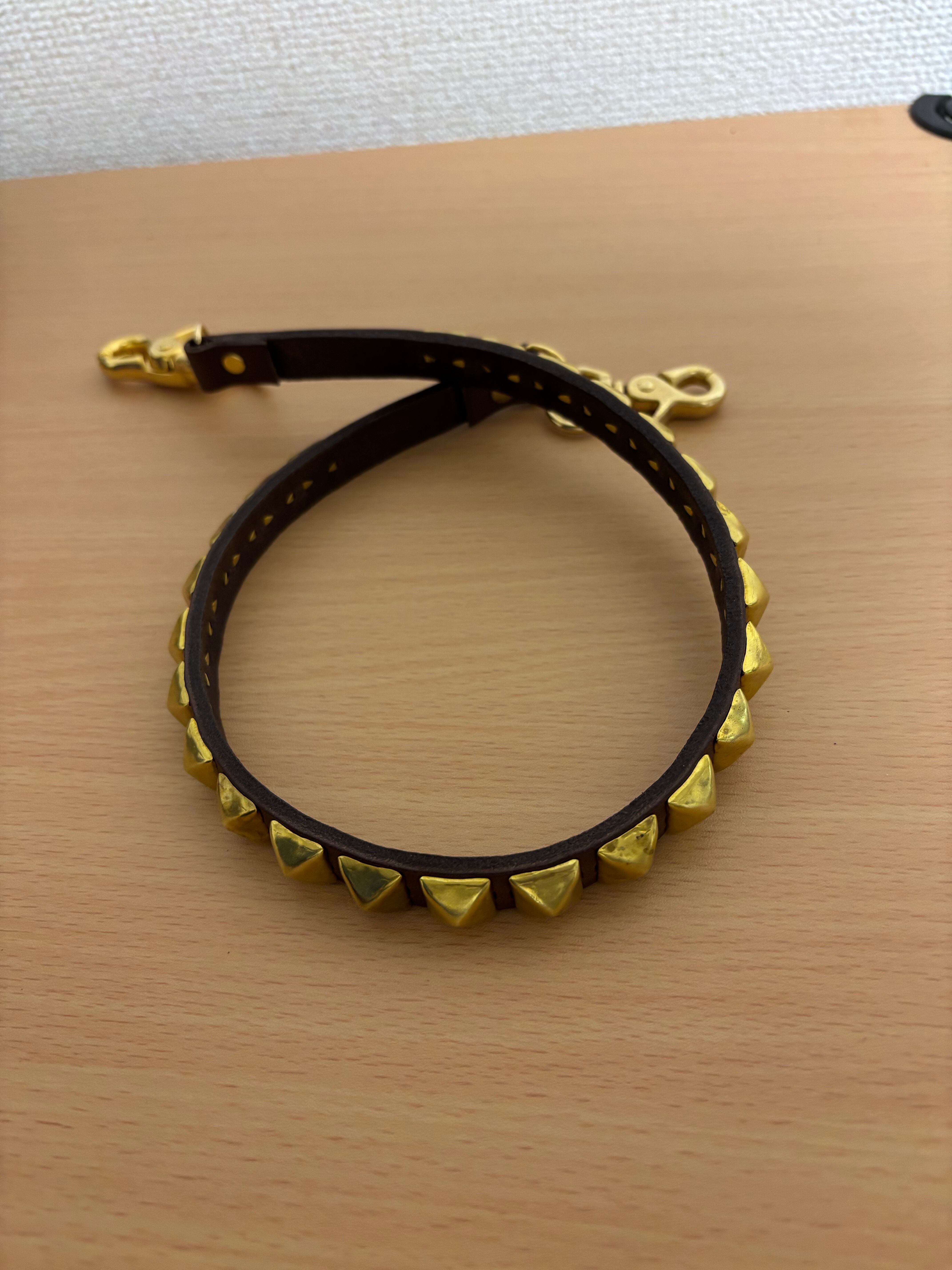 【レバーナスカンタイプ】 ピラミッドスタッズウォレットコード ブラウン×ゴールド